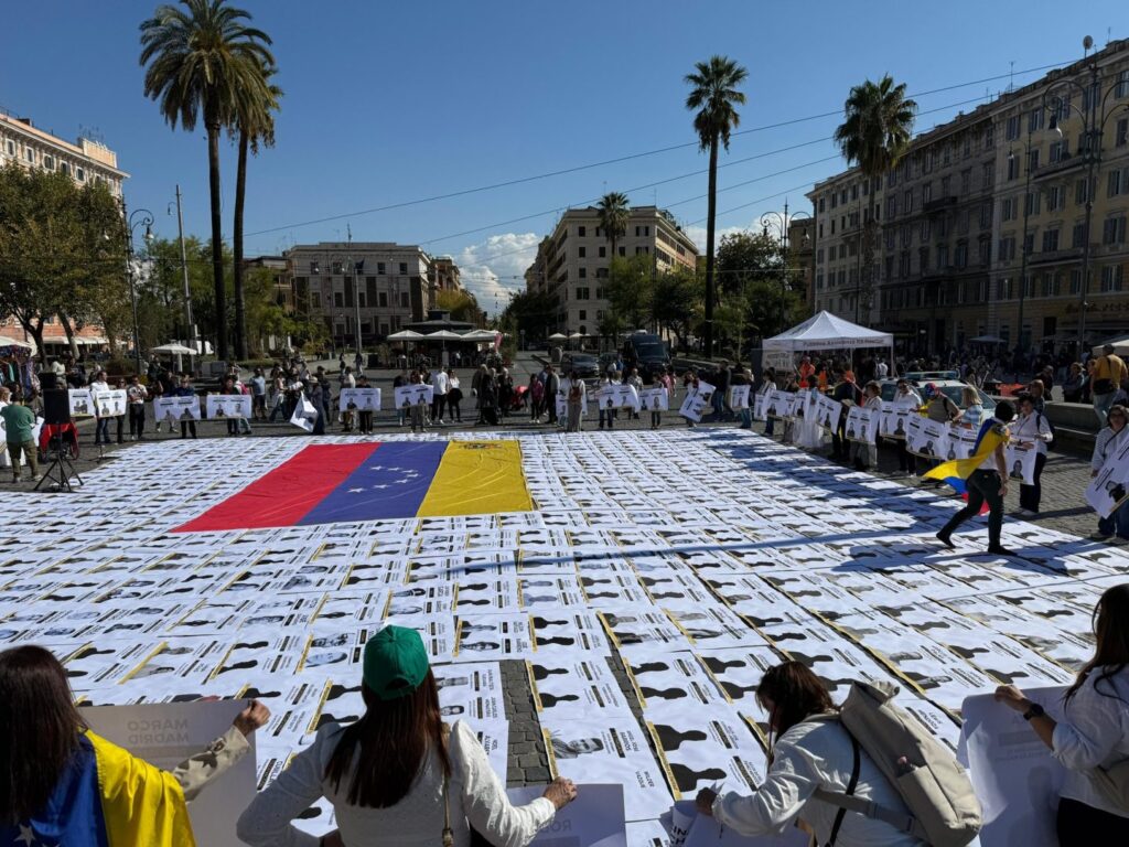 Este sábado 18 de octubre, familiares de presos políticos y activistas de derechos humanos se movilizaron en Roma, frente al Vaticano, llevando impresas las fotos de más de 800 privados de libertad por motivos políticos.